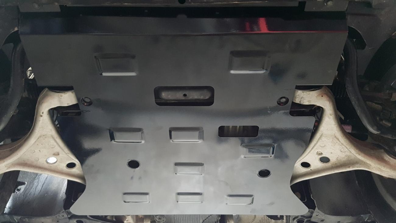 Confecționat din tablă de oțel, vopsit în câmp electrostatic. Pachetul include elementele de prindere(cleme filetate, șuruburi, piulițe, șaibe). Montarea este foarte ușoară, fără nicio modificare pe șasiu. Scopul principal al scutului de motor este să protejeze baia de ulei în cazul impactului cu un obiect dur. Pe plan secundar, scuturile blochează murdăria sau orice corpuri străine să ajungă la componentele mașinii. Apa, noroiul, sărurile utilizate pentru deszăpezire sau chiar și anumite animăluțe pot afecta instalațiile auxiliare, de la instalația electrică și până la rulmenți, curele ș.a.