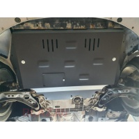 Confecționat din tablă de oțel, vopsit în câmp electrostatic. Pachetul include elementele de prindere(cleme filetate, șuruburi, piulițe, șaibe). Montarea este foarte ușoară, fără nicio modificare pe șasiu. Scopul principal al scutului de motor este să protejeze baia de ulei în cazul impactului cu un obiect dur. Pe plan secundar, scuturile blochează murdăria sau orice corpuri străine să ajungă la componentele mașinii. Apa, noroiul, sărurile utilizate pentru deszăpezire sau chiar și anumite animăluțe pot afecta instalațiile auxiliare, de la instalația electrică și până la rulmenți, curele ș.a.